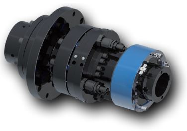 在扭矩限制器一侧法兰里安装了一个硬化的活塞座。模块装置则安装在对面的法兰中,确保扭矩从活塞传递至活塞座。 这能在活塞中产生与所施加扭矩成比例的轴向推力。这个力受到平面和盘型弹簧上所载锥形垫片之间环形段的制约。 如果轴向力比弹簧机构产生的反作用力更大,活塞会收缩,致使环形段倾斜,让活塞从活塞座上脱离。 此时,扭矩限制器将会空转,即过载状态下的脱离。